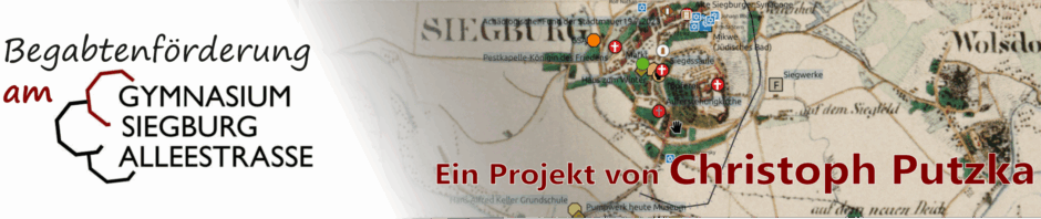 Diese Projekt ist im Rahmen der Begabtenförderung, eines Zusatzkurses, am GSA (Gymnasium Siegburg Alleestraße) entstanden. Weiter Informationen über die Entstehung und die Begabtenförderung finden sie unter Allgemein und unter den Unterpunkten Begabtenförderung, in dem es darum geht, was die Begabtenförderung an unserer Schule eigentlich ist und unter Einleitung, wo es um die Entstehungsgeschichte und den genauen Hintergrund geht.