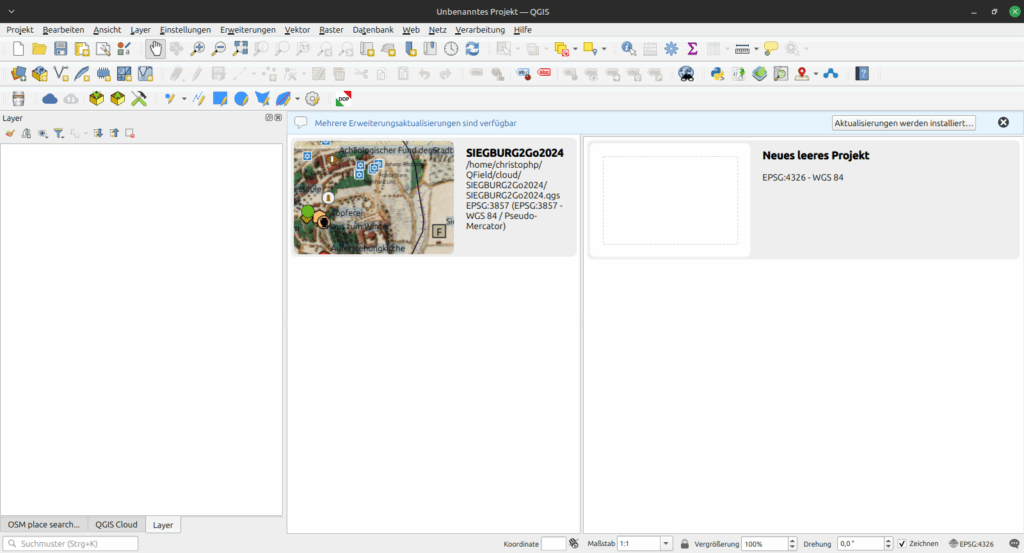 Wenn das Programm gestartet ist sieht man hier die verschiedenen Projekt und kann neue erstellen. Wie man sieht habe ich nur Einprojekt.